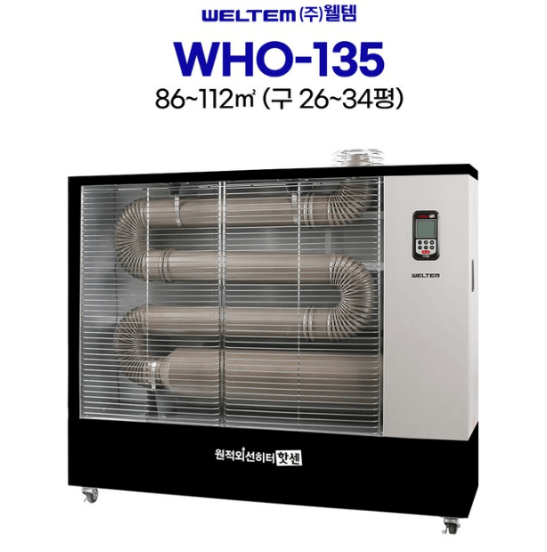 - 중대형 공간(30평 이상): 넓은 창고나 대형 사무실에는 고출력 모델이 필요합니다. 웰템 WHO-135는 30평 이상의 공간을 효과적으로 난방할 수 있는 강력한 모델입니다.